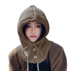 1+1 리빙스튜디오 후드 넥워머 바라클라바 여자 니트 목도리 보온 목폴라 단추형